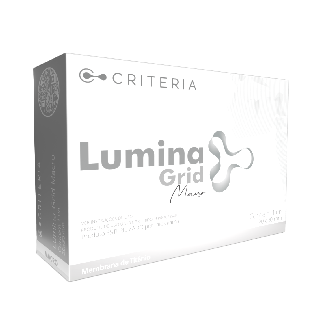 LUMINA-GRID é a única barreira produzida com Titânio Grau ll, conforme norma ASTM F67, com tratamento de superfície para otimização de aproximação celular. LUMINA-GRID permite total vascularização da área enxertada e evita a invasão de células do tecido conjuntivo e epitelial.